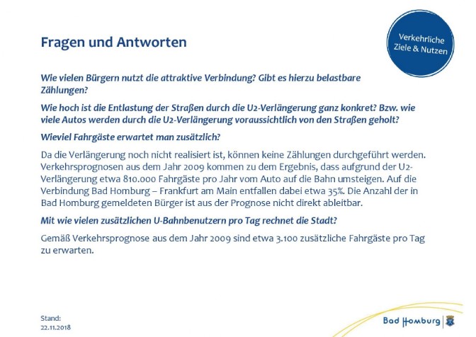 Warum hier auch der aktuelle Verfahrensstand zur U2-Verlängerung erläutert wird Die Bürgerliste KEHRTWENDE Bad Homburg setzt sich im Rahmen ihres 1.Wahlprogrammpunkts für eine S-Bahnstation Gonzenheim–Haberweg als clevere und kostenschonende Alternative zur geplanten Verlängerung der U-Bahnlinie U2 ein. Da das offizielle Projekt „U2-Verlängerung bis zum Bahnhof Bad Homburg“ nachweislich auf umstrittenen Prognosegrundlagen beruht und derzeit Gegenstand einer aufsichtsrechtlichen Prüfung auf Landesebene ist, halten wir es für notwendig,die Öffentlichkeit transparent über den aktuellen rechtlichen und fachlichen Stand dieses Vorhabens zu informieren. Die nachfolgenden Informationen dienen der Einordnung, warum eine Neubewertung der bisherigen Planung erforderlich ist und weshalb alternative Lösungen für die Mobilität in Bad Homburg ernsthaft geprüft werden sollten. |