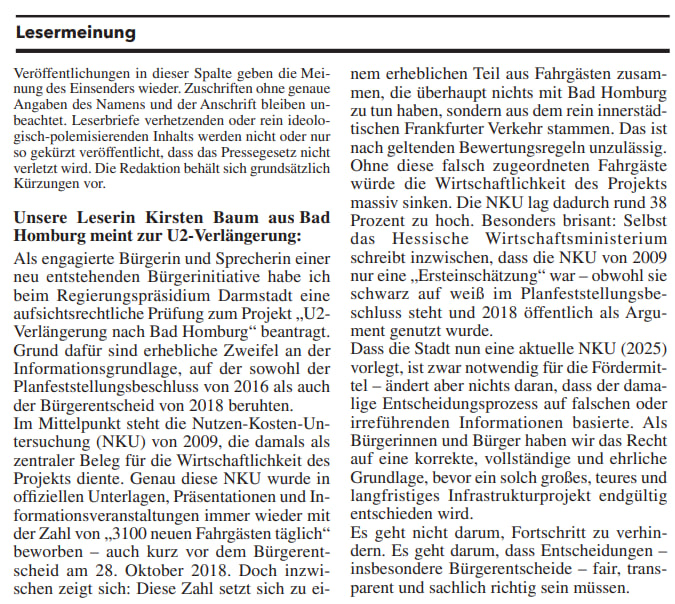 U2 - Antwort auf Fachaufsichtsbeschwerde